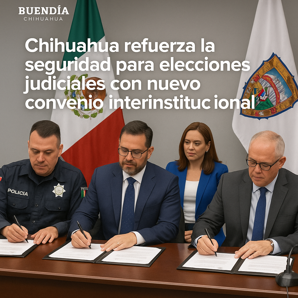 Chihuahua, Chih. – En un esfuerzo conjunto por garantizar un proceso electoral seguro y transparente, el Gobierno del Estado, a través de la Secretaría de Seguridad Pública Estatal (SSPE), firmó este lunes un convenio de colaboración con autoridades electorales para reforzar la seguridad durante las elecciones judiciales programadas para el próximo 1 de junio.
